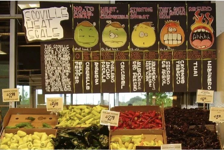 国外的市场,辣椒被按辣度分类*维基百科