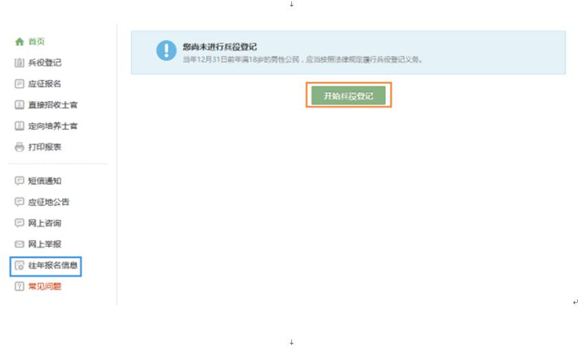 登录系统以后,点击右侧的 开始兵役登记 进行报名工作。