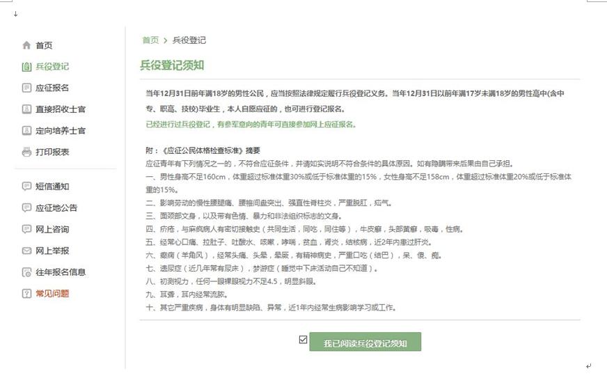 在这个时候请 详细阅读 详细阅读 详细阅读 (重说三)兵役登记须知。了解自己的各方面情况是否达标,这能避免后续工作出现的很多麻烦哦!