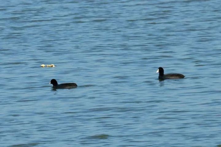 待赶到宿鸭湖红船处,得知张斌老师刚从那里离开,又去了别处寻鸟去了。位于宿鸭湖水岸的红船,是拍对面芦苇荡里的鸟儿最好位置。不由分说,我们爬到了红船上。静心观望不远处对岸的芦苇荡,通过相机镜头发现,竟然有不计其数的鸟儿在正一片空地处晒暖。眼前的湖水里,有黑色的水鸟在自由地游弋。
