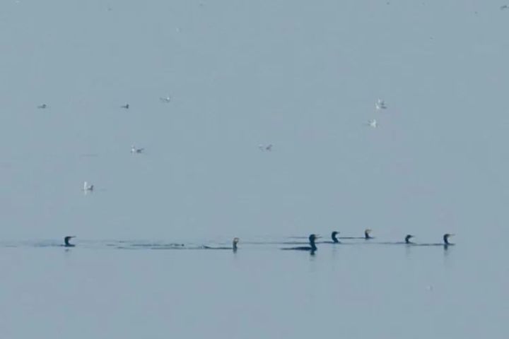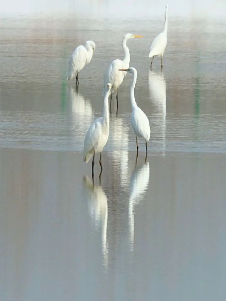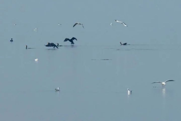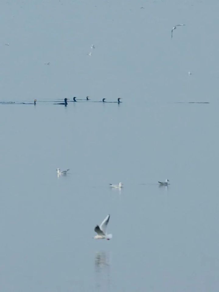 午饭期间,听张斌老师讲了不少有关宿鸭湖鸟儿的故事。他说宿鸭湖原是一条水沟,属于生态湿地,还野性十足。这里资源丰富,有水草、小鱼、米虾、水生昆虫、软体动物、青螺、芦苇荡以及水生植物的叶、茎、块根、球茎和果实,适合很多鸟儿食用生存,已形成一条鸟儿生存的完整生态链。今年不仅来了白天鹅、丹顶鹤,而且还来了海鸥等。午饭之后,张斌老师驾车领路宿鸭湖东大坝,让我们亲眼看到了一群群大白鹭和海鸥。