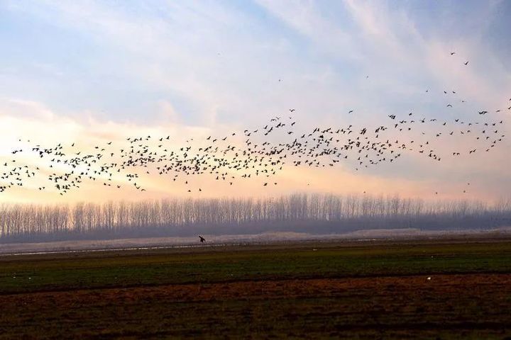 不躺在鸟屎上,焉能拍着大雁!当无数只大雁从我们头顶飞过之时,我们瞬间就会躺在地下草丛的鸟屎上,把相机镜头举向天空,一阵接着一阵的快门声成为整个麦田最清脆的声音。