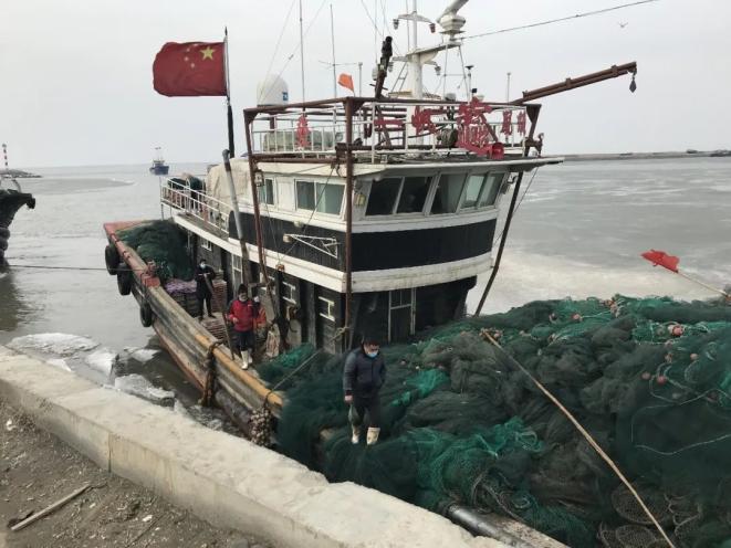 3月初,海岸上冰凌还未消融,二界沟第一批复工复产渔船已经纷纷起锚,赶赴渤海各个渔场,开始有序出海生产。
