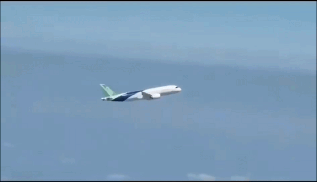 继波音707“横滚”、空客350“垂直起飞”后,你们期待的C919“大坡度机动”在今年也来了!在今年7月29日的试飞中,中航工业试飞院副院长赵鹏驾驶C919进行了90°大坡度测试!国产客机做出类似战机一样的机动动作,被迄今为止最近距离的空对空拍摄记录下来了。话不多说,回顾动图激动一下!