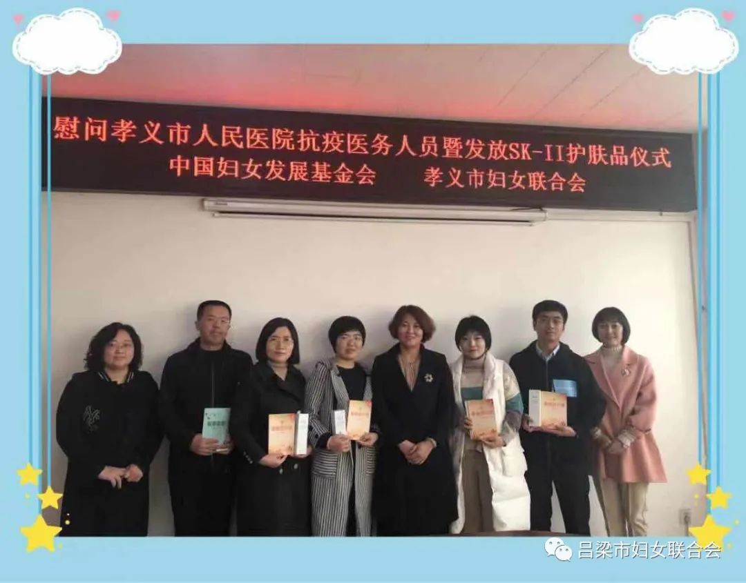 为表达对我市抗疫医护人员的崇高敬意,感谢他们在疫情期间作出的巨大贡献,近日,中国妇女发展基金会、山西省妇联、吕梁市妇联联合宝洁集团旗下SK-II品牌,为我市赴湖北参与疫情防控的医护人员和收治新冠肺炎感染患者定点医院的一线医护人员赠送了价值35万余元的SK-II神仙水。