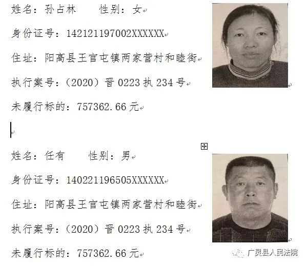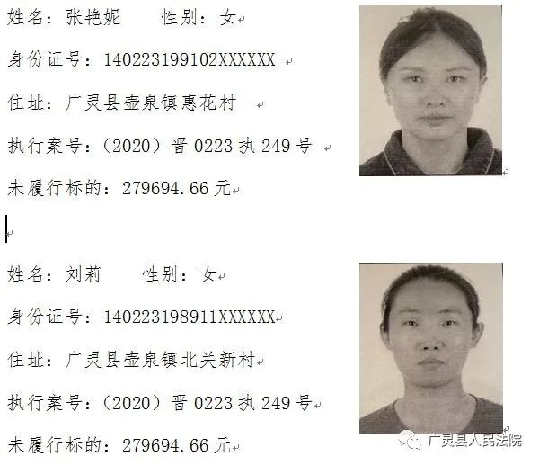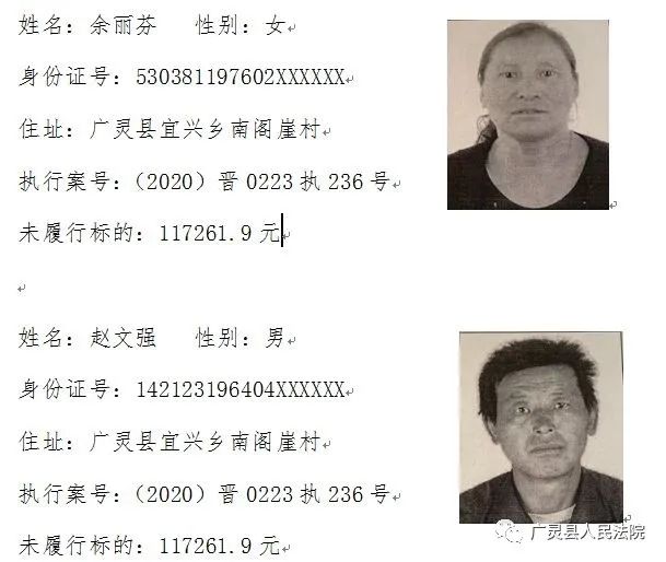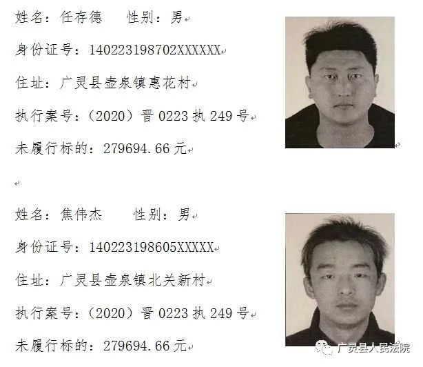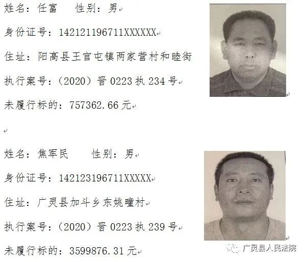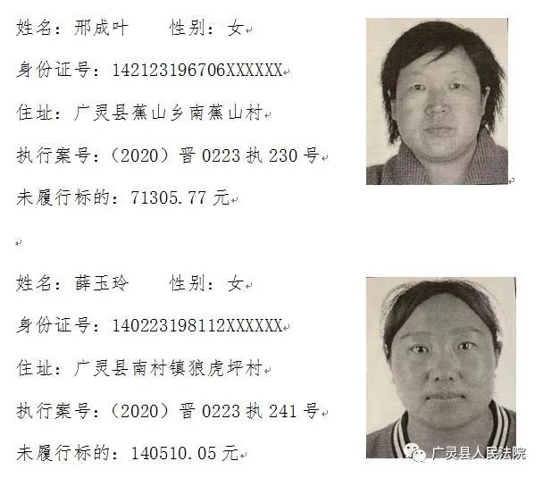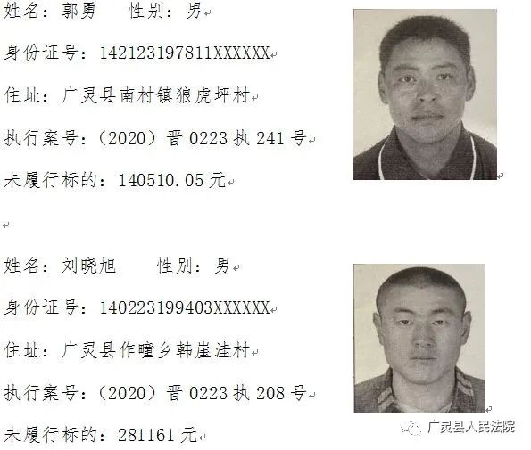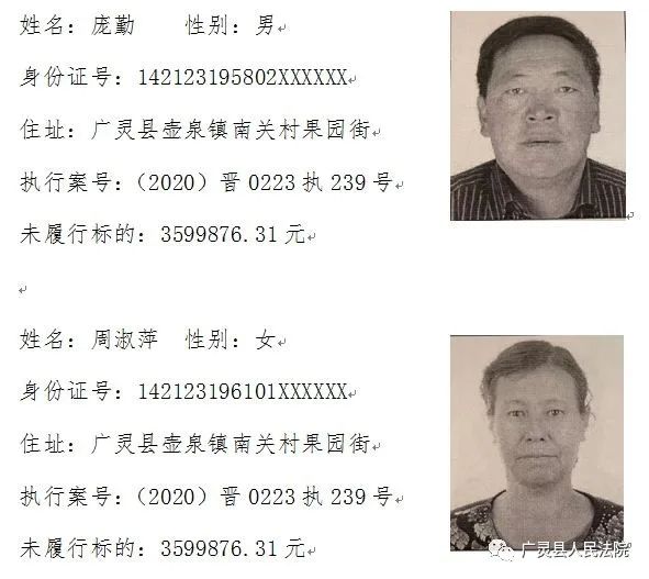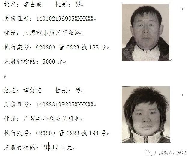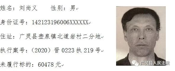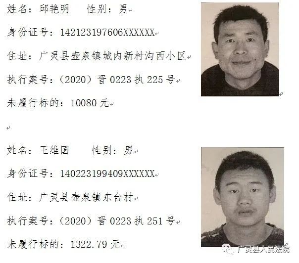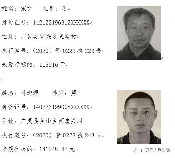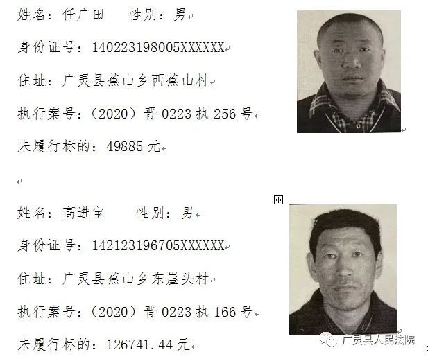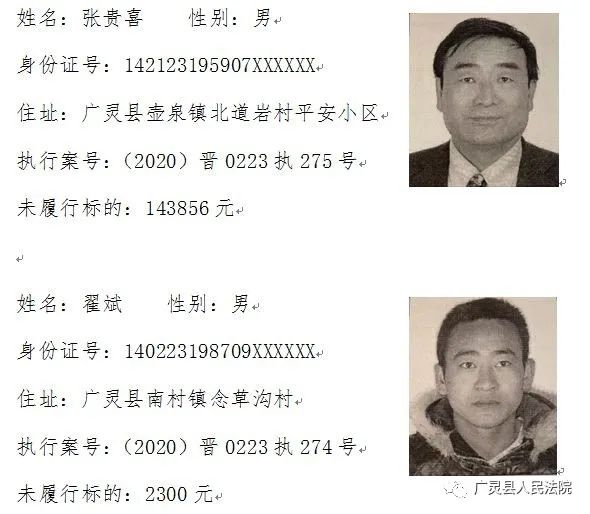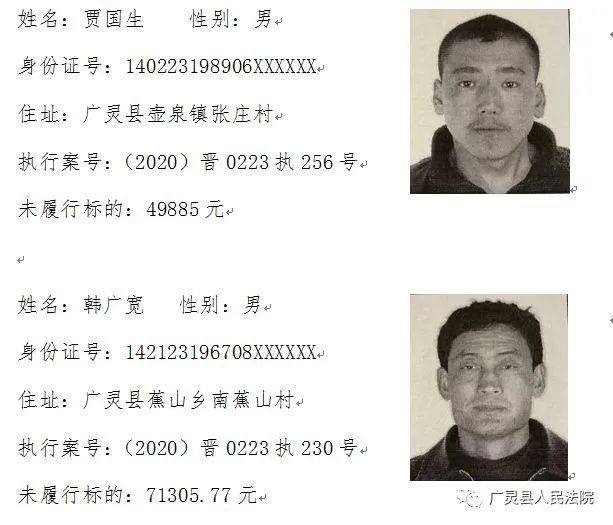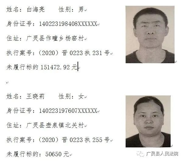 广灵县人民法院失信被执行人名单信息公布(2020年11月-12月)