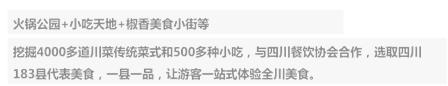 项目充分发挥川菜产业园辐射作用,挖掘4000多道川菜传统菜式和500多种小吃,选取四川183个“一县一品” 经典小吃大荟萃,让游客享有“给你一天·吃遍全川”的一站式体验全川美食。首开区川味生活美学馆已于12月5日对外开放。