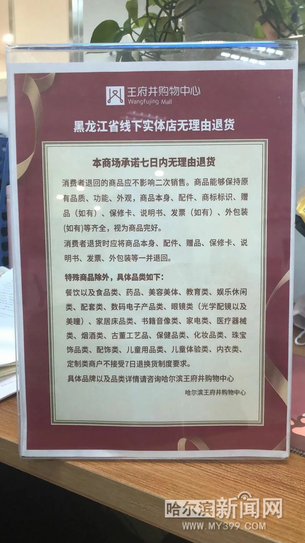 线下实体店承诺无理由退货单位名单1.大商哈尔滨新一百购物广场有限公司