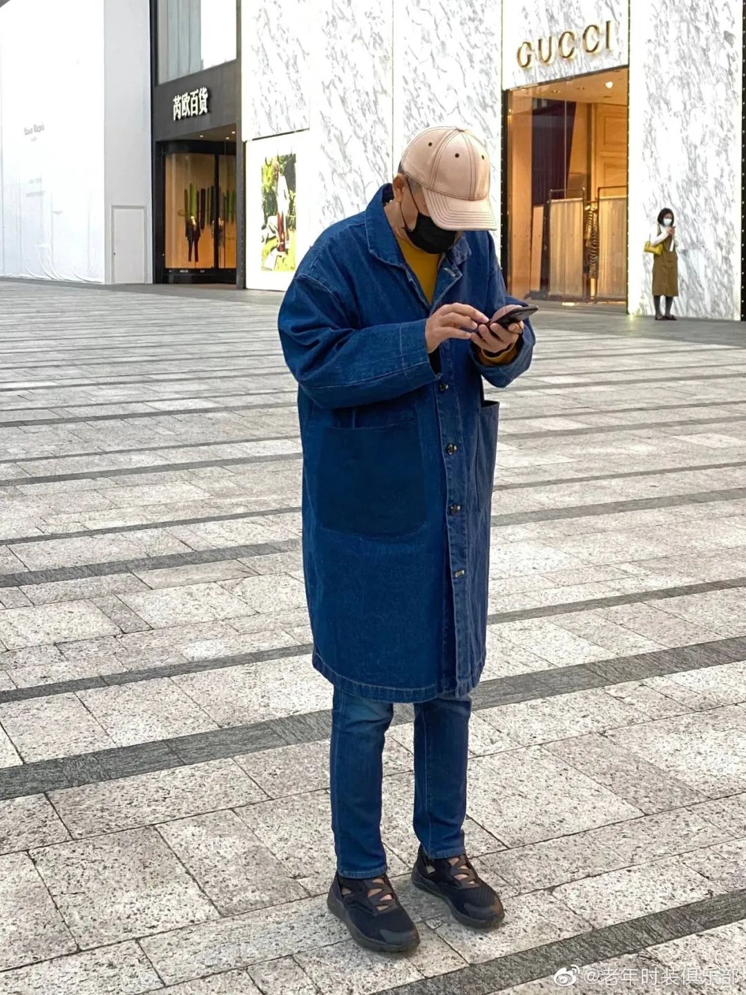 “他手里揣的虽然是个塑料材质的手包,但颜色很跳,我觉得比皮包的效果更好。就连别口罩的方式,我都觉得很帅。”