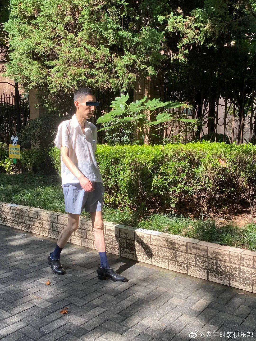 2020年8月 华山路这位瘦爷叔的鞋子很有意思
