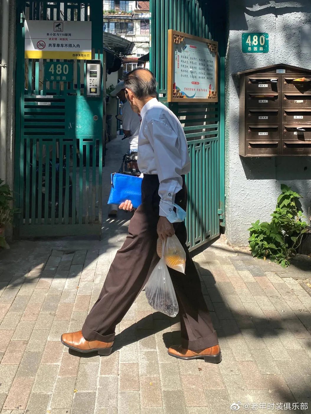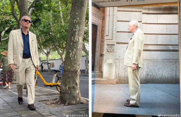 在他的镜头下,阿姨爷叔敢穿会搭有腔调,活脱脱是一个“老年时装俱乐部”。
