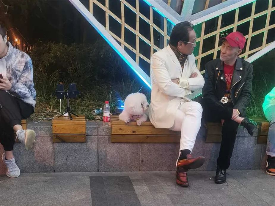 这不,没走两步,他就被一位坐在长椅上的爷叔吸引住了。
