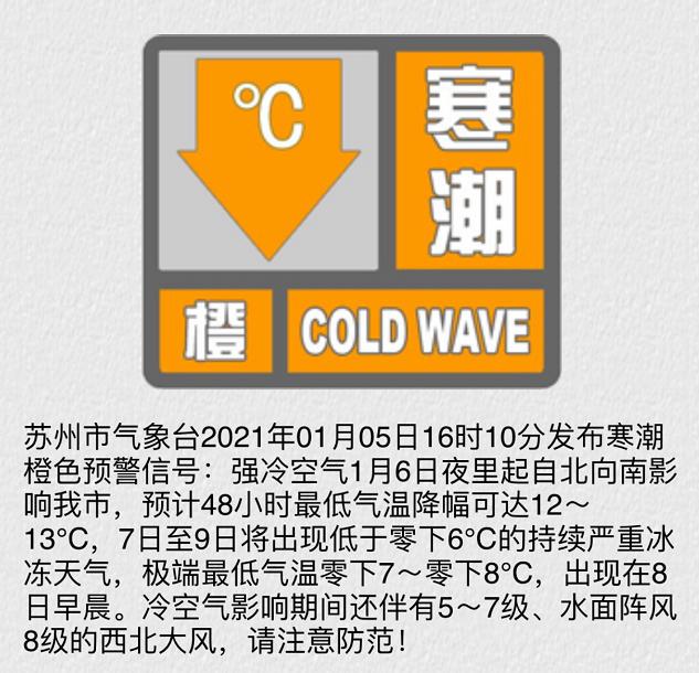 刚刚,苏州气象发布了寒潮黄色预警