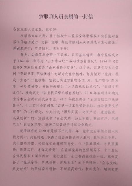 回望2020年,要感恩“人间大爱” 。监狱第一时间启动并落实全封闭管理,塑造了稳定的改造环境。监狱民警坚守岗位,长期封闭执勤,多名民警执勤期间家庭遇到变故,充分展现了监狱民警的人间大爱和使命担当。回望2020年,要感恩“法治进步”。这一年,监狱形成“五级会议”、“三重审核”、“三次公示”的程序体系,形成刑罚执行工作全链条管理,并与淄博市立医院加强“医疗联合体”建设,提升监管医疗卫生保障条件。回望2020年,要感悟“自身成长” 。2020年仲秋节前,监狱举办了6批次线上亲情帮教活动,自身的成长和进步,亲属们都能体会到。下一步,监狱还将继续完善视频会见系统,为家属会见交流提供便利条件。