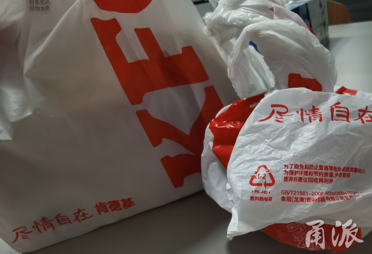 早早在门店堂食和门店自取业务中逐步用纸质餐具替代塑料制品的肯德基,也没有做到“外卖禁塑”。记者在“肯德基宅急送(宁波港隆店)”下的外卖订单,外包装依旧是不可降解的塑料袋。