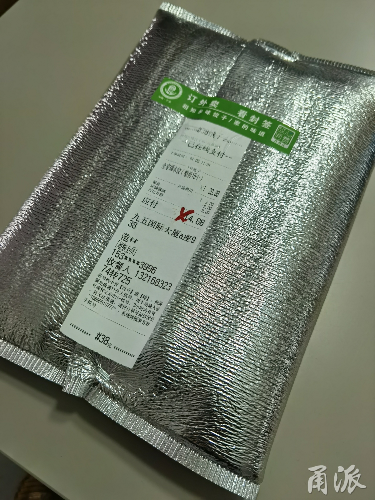 外卖送达后,记者注意到,“全家福水饺”的包装盒是铝膜保温袋,并没有再用塑料袋打包配送。商家表示,早前店铺就已经积极响应国家限塑号召,减少使用不可降解一次性塑料袋。随着今年寒潮来袭,考虑到饺子类食物对保温的要求比较高,商家决定全面使用铝膜保温袋,将塑料袋“淘汰出局”。