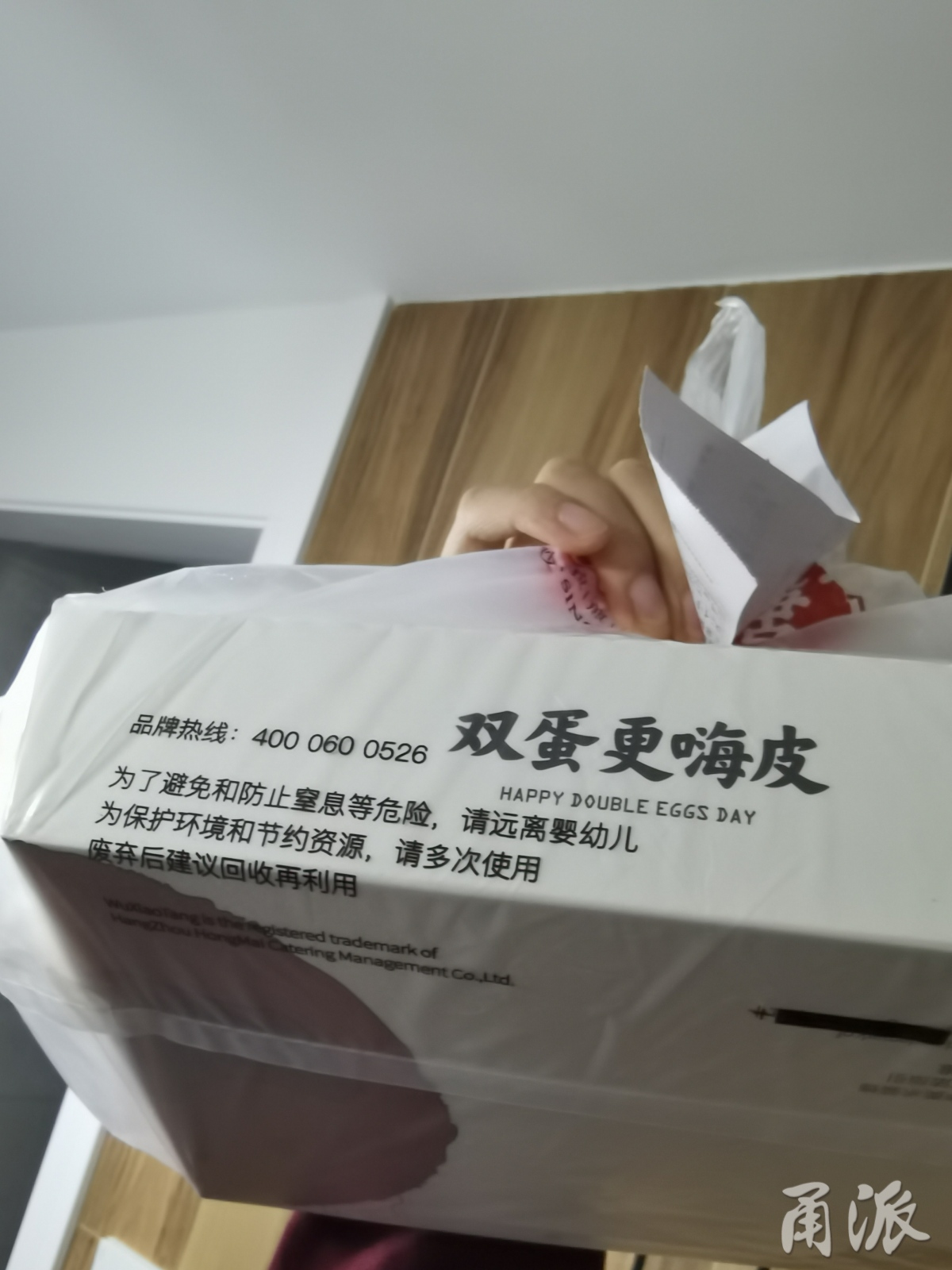 另一份外卖则出现了不同的情况。该商家名为“吴小糖·沙拉煎饼”,是一家注册地点为上海、门店开到多个城市的连锁餐饮品牌,记者点单的店铺位于宁波宏泰广场。