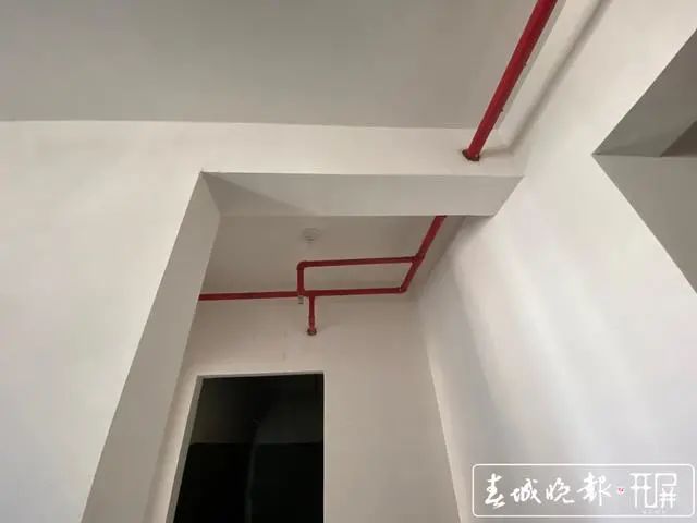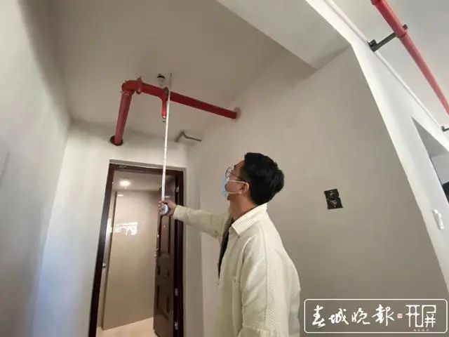 还有业主反映,固定消防管道的支架有的在上面,有的在下面,“我家的固定支架在消防管道下面,那个支架大约又要占用5厘米的空间。”业主贾先生告诉记者,这些东西直接影响到了层高,目前毛坯房层高是2.73米,消防管道占了0.47米,吊完顶层高只剩2.2米左右,加上要安装地板的话需要5厘米,装修好业主实际居住的层高只剩2.1米左右,十分压抑,居住体验感很差。