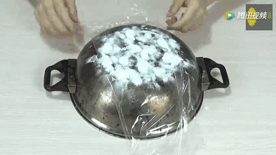 面粉+小苏打+保鲜膜1.取适量面粉撒在锅底,再撒入等量的小苏打。