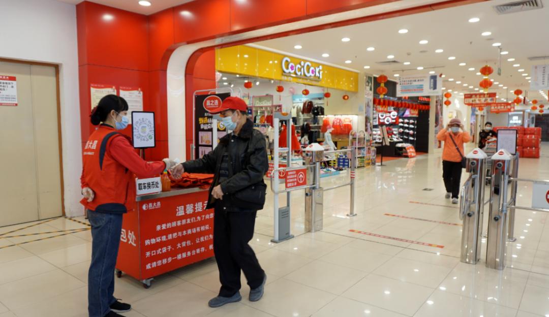 文件要求,所有人员健康码和体温检测正常、佩戴口罩方可进入商场、超市。