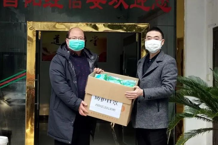 在酉阳县经信委办公楼前,一场简短的防疫物资交接式正在进行。酉阳法院工作人员将价值11500元的500个N95口罩以及干警个人捐赠的消毒液消毒片等物资统一捐赠给县疫情防控工作领导小组,统筹用于全县疫情防控工作,助力打赢疫情防控阻击战。酉阳法院召开党组扩大会暨疫情防控领导小组第四次会议。院党组成员、审委会专职委员及各部门负责人参会。院党组书记、院长吴涛主持会议。会议集中学习了习近平总书记在中央政治局研究新冠肺炎疫情防控工作会议上、在统筹推进新冠肺炎疫情防控和经济社会发展工作部署会议上的重要讲话精神,以及县委县政府关于疫情防控相关会议及文件精神,并就本院疫情防控工作作了安排部署。