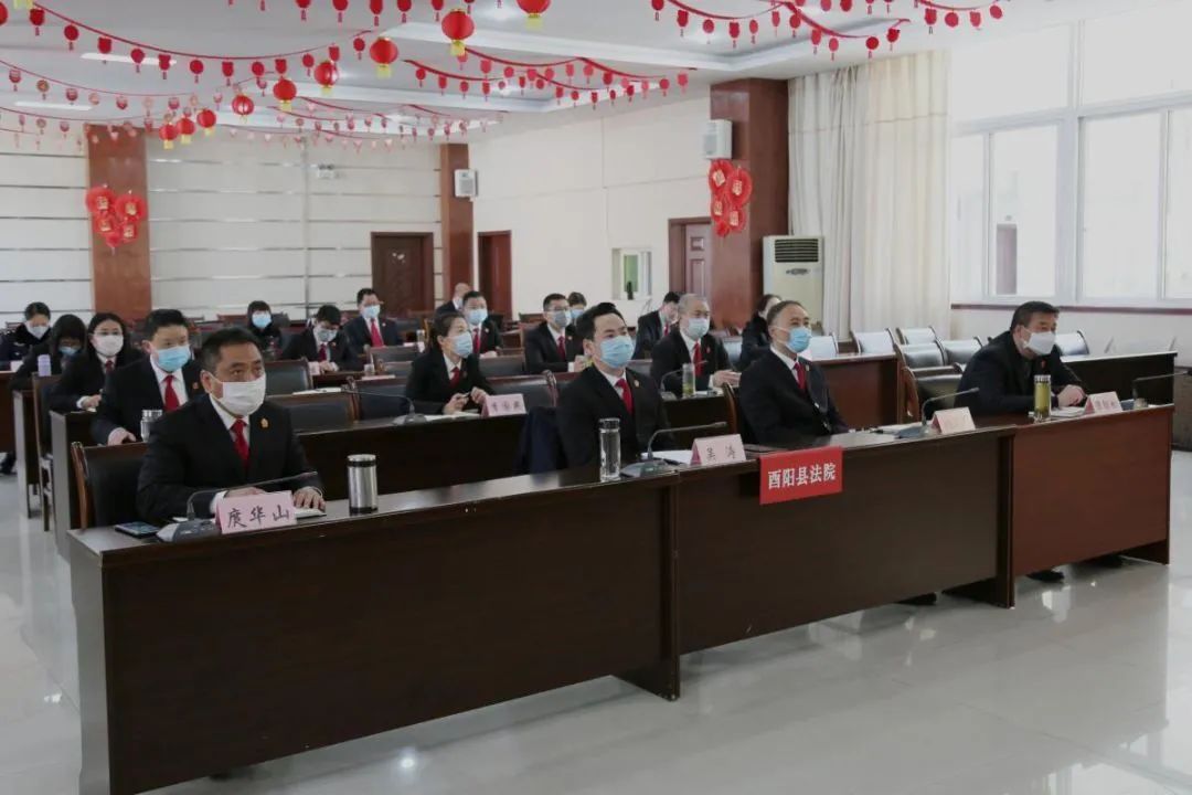 酉阳法院召开2020年一季度审判执行工作运行态势分析会。在家院领导、各部门负责人、审判管理办公室(研究室)全体人员及员额法官在现场参加会议,法官助理、书记员通过“云视讯”系统远程参会。院党组书记、院长吴涛主持会议,并就下一步抓好疫情防控和执法办案提出了工作要求。