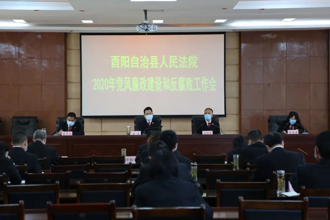酉阳法院召开2020年党风廉政建设和反腐败工作会。全体院领导、审委会委员、各部门负责人、各部门专兼职廉政监察员及监察室全体干警现场参会,其他干警通过云视讯远程参会。院党组书记、院长吴涛传达学习了全市法院2020年党风廉政建设和反腐败工作会议精神,并就本院贯彻落实讲话精神进行安排部署。4月28日
