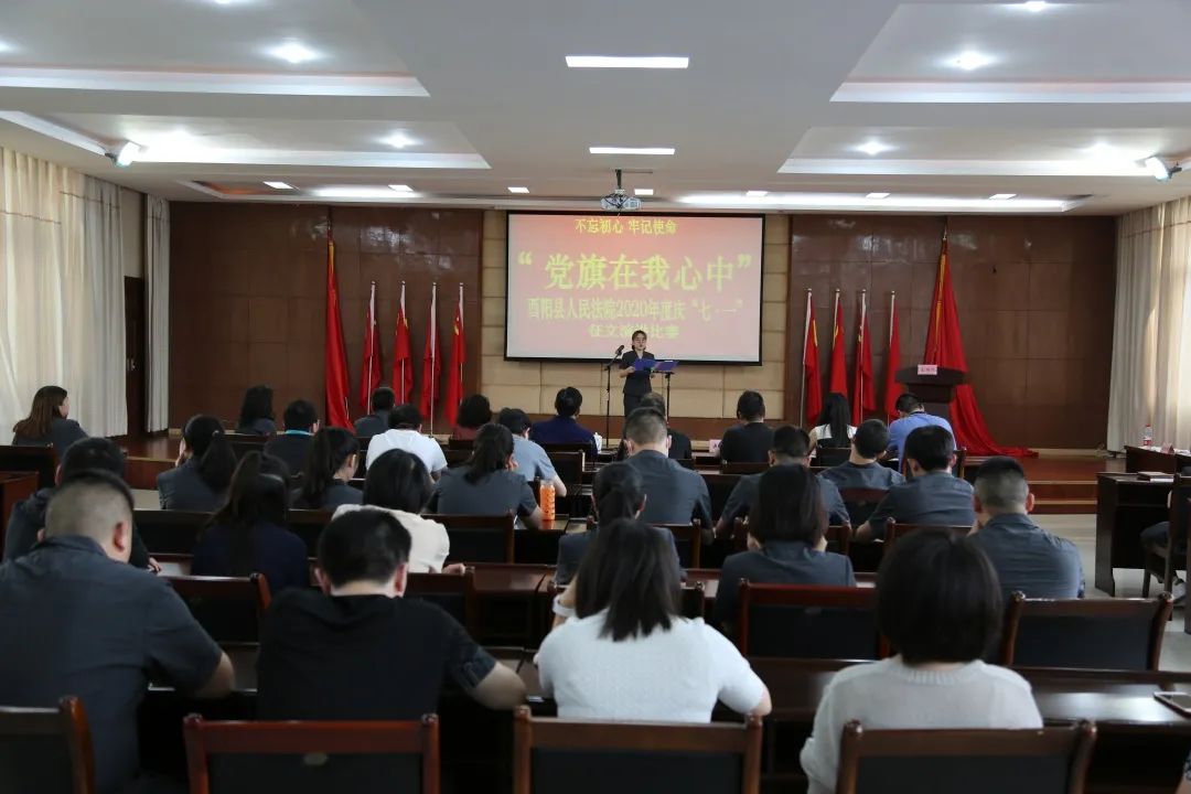 为隆重庆祝建党99周年,进一步发挥先进典型的示范引领作用,增强法院干警的责任感和使命感,酉阳法院在五楼会议室举行“不忘初心 牢记使命 党旗在我心中”主题演讲比赛,12名选手参赛。本次活动邀请了县委政法委政治处主任袁宏,市人大代表罗昌生、杨娅,县职教中心高级讲师、国家级普通话测试员陈霞与在家院党组成员共同担任评委。6月30日