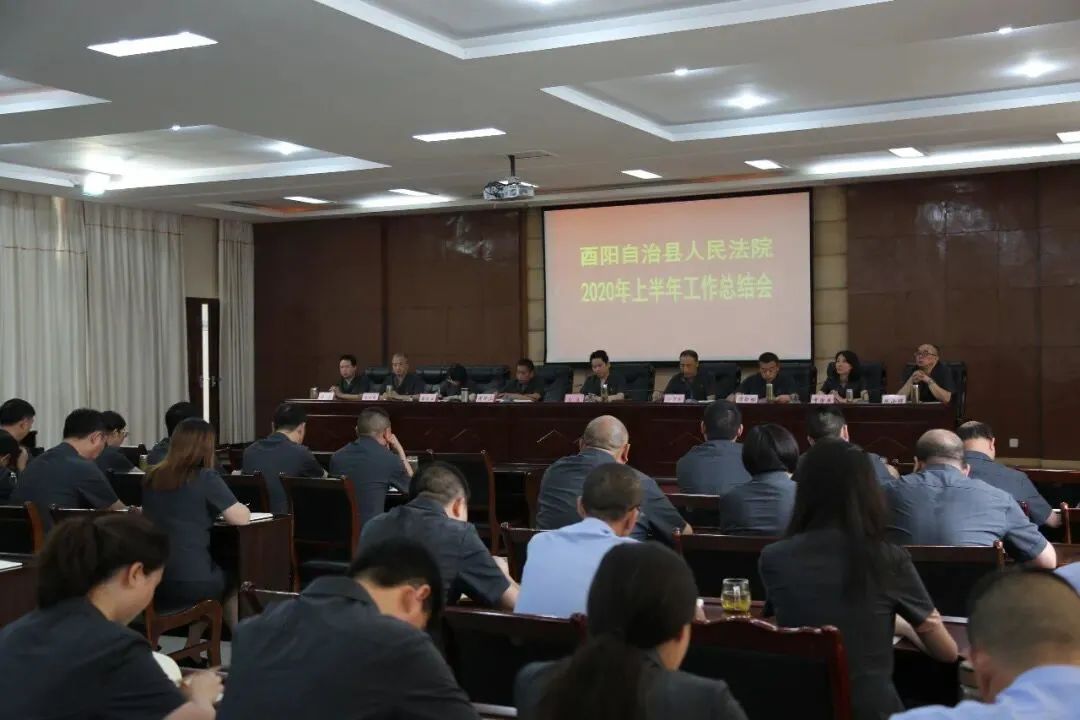 酉阳法院召开2020年上半年工作总结会,总结上半年工作,对下半年各项工作进行安排部署。院党组书记、院长吴涛出席会议并作总结讲话。全体院领导、审委会委员、全院干警参加会议。八 月