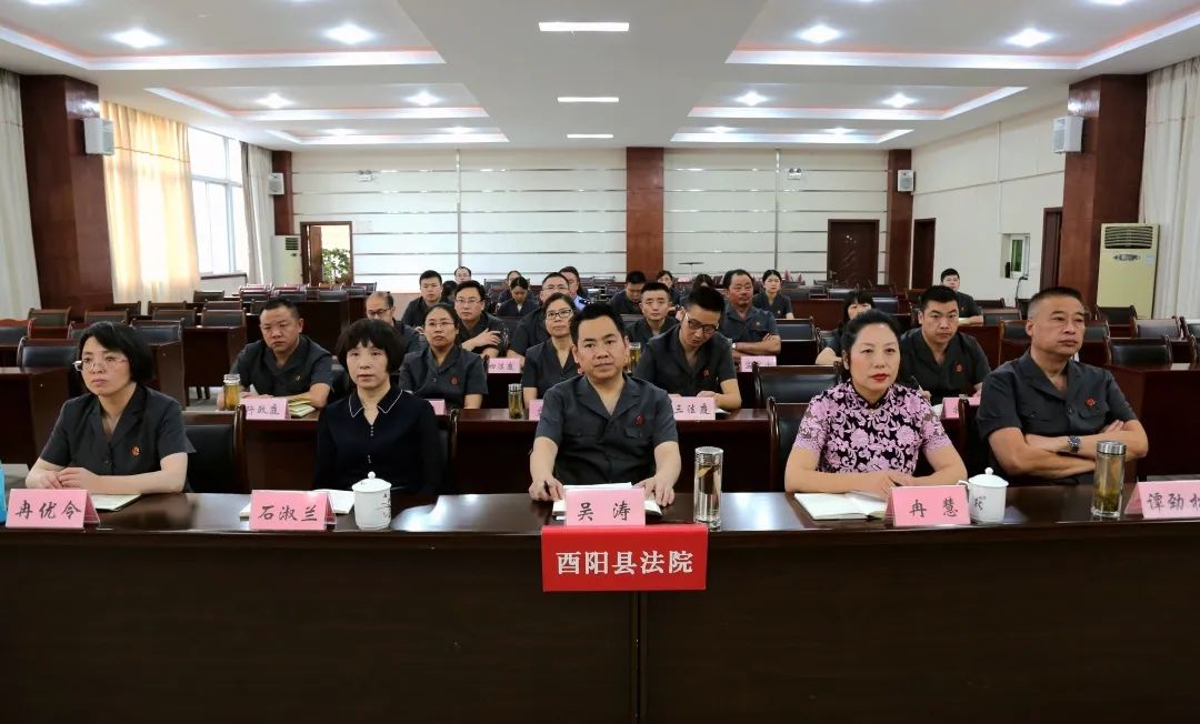 酉阳法院召开关于开展虚报冒领补助和司法作风问题专项整治动员部署会。院党组成员、纪检组长冉优令主持,班子其他成员,审委会委员,各部门负责人参加。院党组书记、院长吴涛作动员讲话。