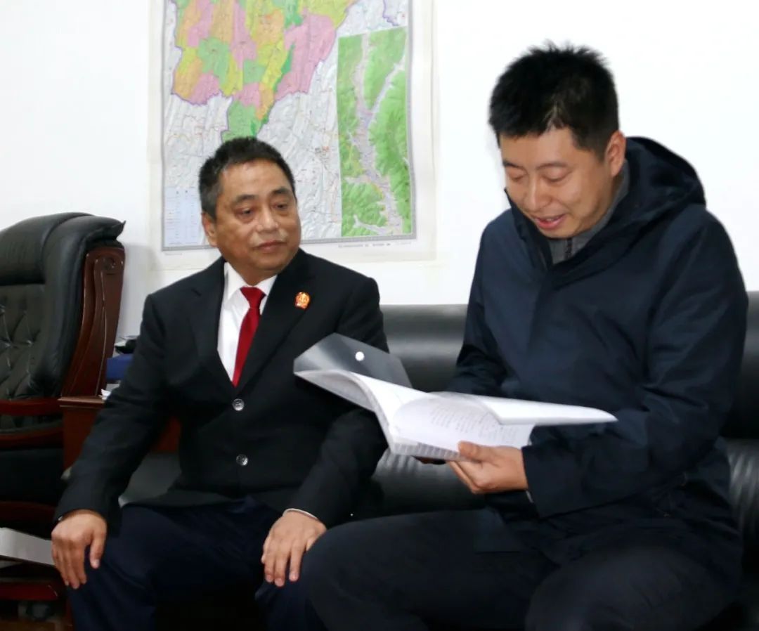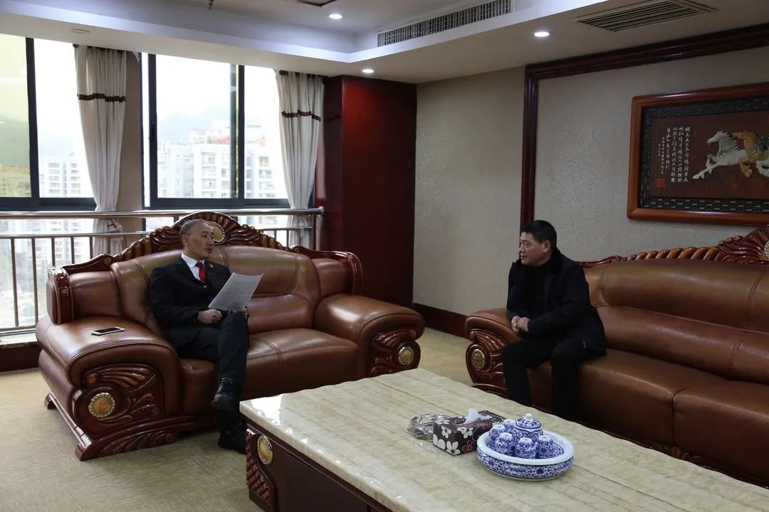 市五届人大代表、致公党酉阳支部主委、酉州实业集团公司董事长张新文专程到酉阳县人民法院走访调研。院党组书记、院长吴涛通报了2020年度法院工作开展情况。当面征询代表意见建议,解答相关案件办理进度,为代表提案建议出谋划策。