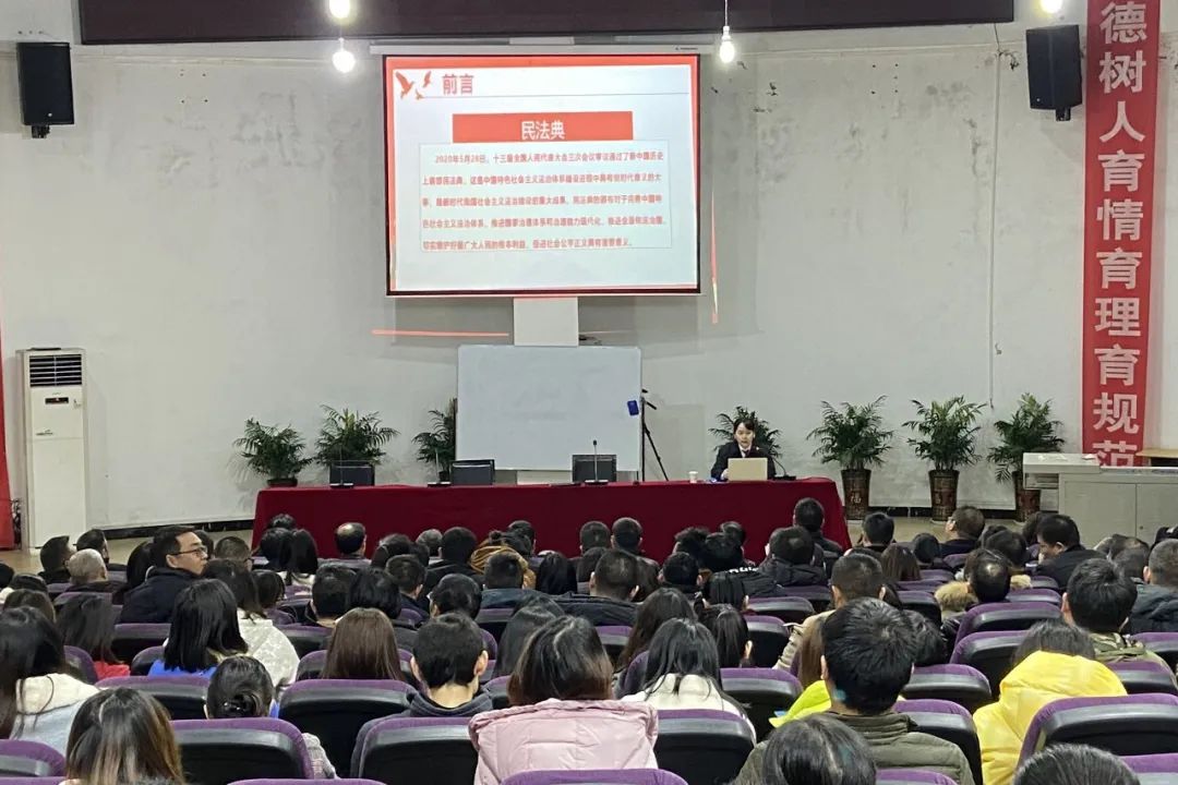 为深入贯彻习近平总书记关于民法典普法工作的重要指示,按照中央和市委关于深入学习宣传民法典的部署,推动在校师生学习民法典、遵守民法典、维护民法典。酉阳法院应邀到市五届人大代表罗昌生所在的工作单位-重庆市酉阳第二中学校,开展“民法典与你同行”校园普法系列专题讲座。十二月