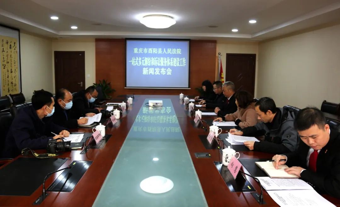 酉阳县人民法院召开一站式多元解纷和诉讼服务体系建设工作专题新闻发布会,特邀市五届人大代表、县疾控中心疾控免规科科长郑霞,酉阳县政协委员、县养护一段职工张广雷,酉阳县人大代表、县城乡建委建管科科长石磊参加,重庆法制报、武陵都市报、酉阳报三家媒体记者参会。12月2日