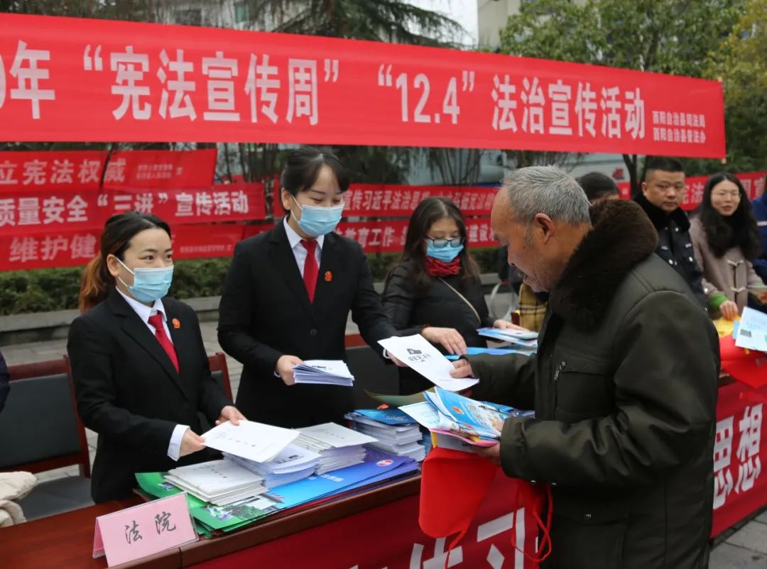 11月30日至12月6日是第三个全国“宪法宣传周”,12月4日是第七个国家宪法日。为深入学习宣传习近平法治思想,弘扬宪法精神,增强公民的宪法意识和法制观念。酉阳法院联合县司法局、县公安局、县市场监督管理局等11个单位部门在红军广场开展“宪法宣传周”“12.4”法治宣传活动。