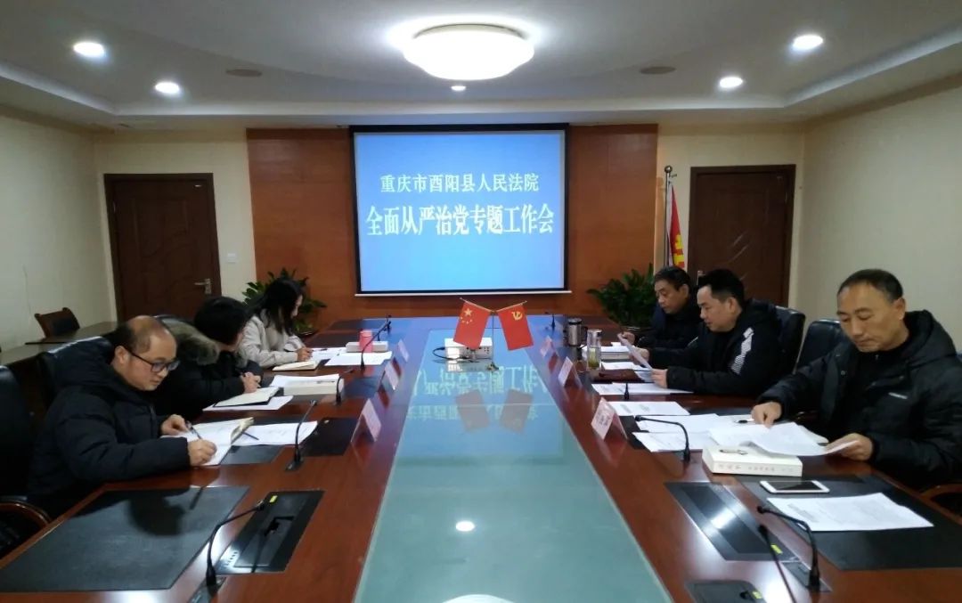 酉阳县人民法院召开全面从严治党工作专题会议,党组书记、院长吴涛主持会议,在家班子成员参会。12月7日