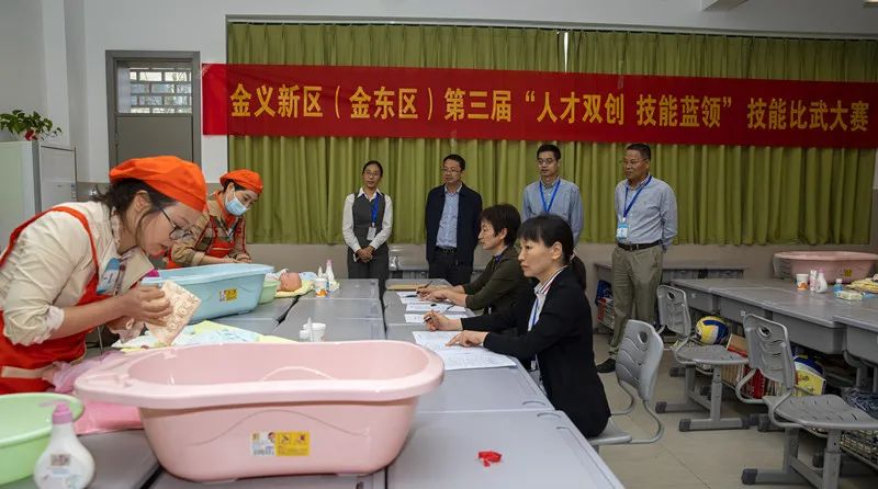联合人社局等单位举办“人才双创·技能蓝领”比武系列赛育婴员与保育员专场,400余名选手参赛,涉及11个项目,打响“金东月嫂”招牌。