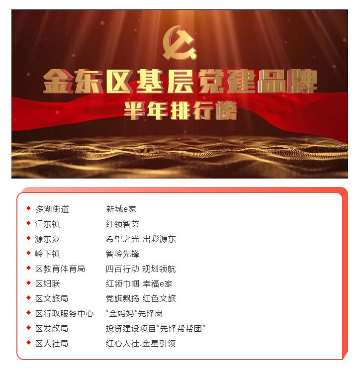 “红领巾帼、幸福e家”机关党建品牌在金东区基层党建品牌半年排行榜上名列前十。
