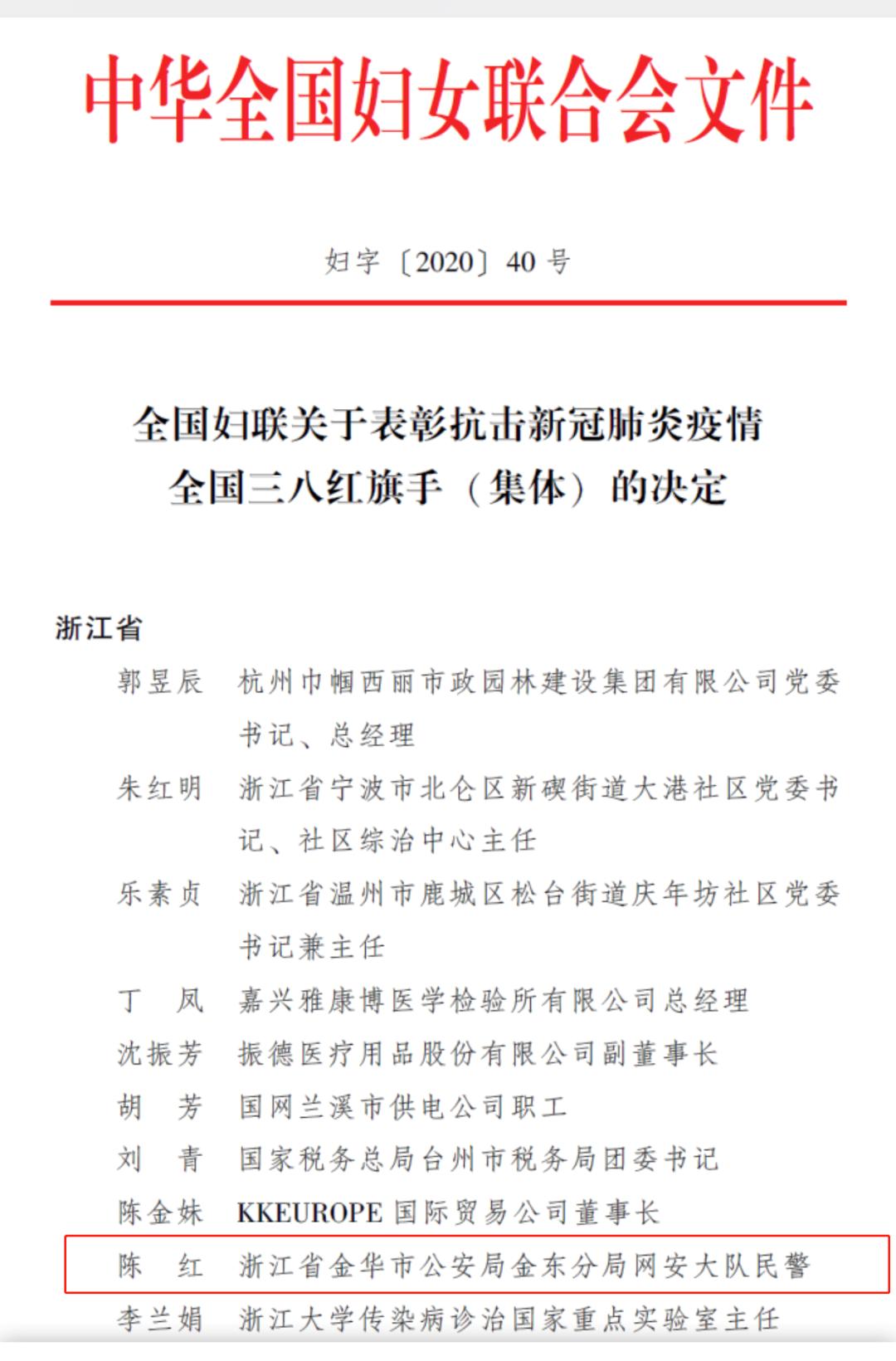 入选抗疫全国三八红旗手1名、全国文明家庭1户。