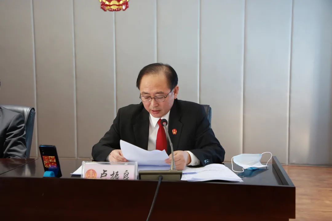 党组书记、院长高峰对全院干警2020年的辛苦工作、努力提升结案率的集体荣誉感、圆满完成全年工作任务表示感谢。针对2020年各项工作中的不足所反映出的工作纪律问题进行了梳理分析。