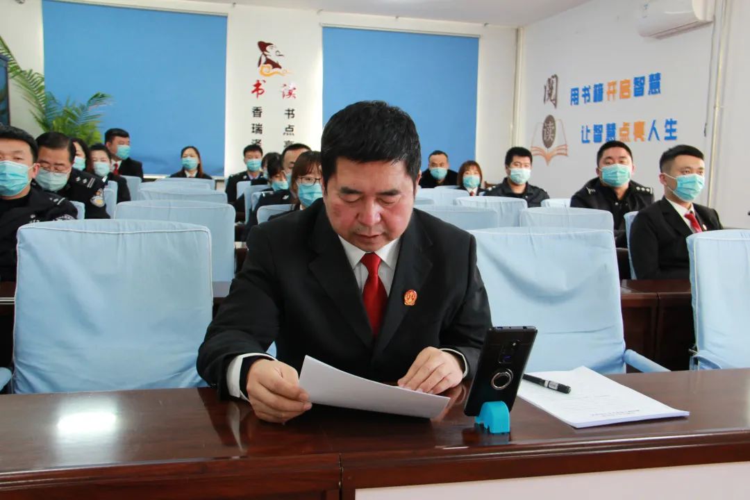 审判委员会专职委员赵凤朝、政治部主任郑艳玲在分会场分别就2020年全院案件质量评查情况、机关工作纪律、环境卫生检查情况及卷宗归档情进行通报。