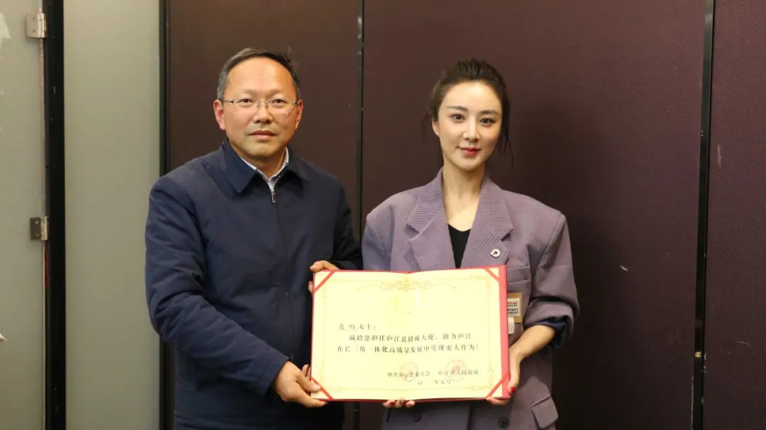 许华为向薇娅颁发“庐江县招商大使”聘书