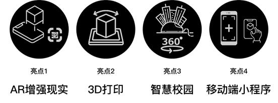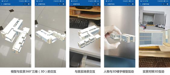 增强现实阅读——将建筑3D模型制作成手机端AR,观览者可通过直接扫描沙盘模型及扫描二维码,获取手机端360度增强现实内容,实现建筑空间形态感知。看完嘉定校区