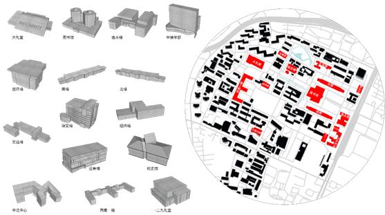 亮点多多空间形态阅读——四平路校区的新老建筑在空间构成上各自具有特色,对建筑原有的三维形态进行抽象,通过基于3D打印、雕刻石材砌块的形式,构筑微缩的建筑三维形态,为观览者呈现建筑的总体形象感知。且石材不宜损坏,随时间的推移会与周边环境共生,结合环境相得益彰。