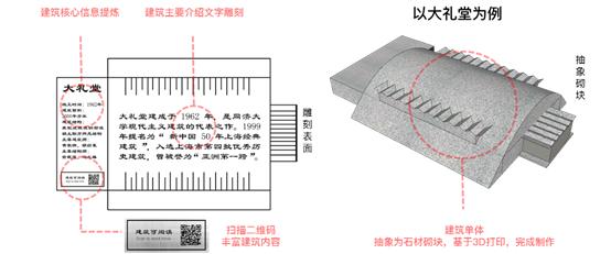 核心信息阅读——以石材刻字的形式,在砌块表面呈现建筑的核心信息,使观览者可以第一时间了解建筑的主要信息,形成直观的阅读体验。