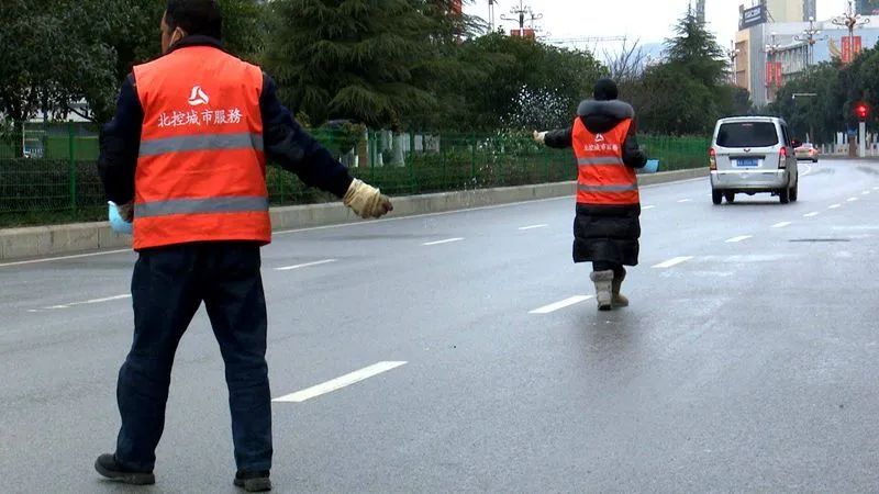 一大早,在县城龙场驿南路,记者看到,北控城市服务(修文)有限公司正组织人员对结冰道路进行撒盐。当天,该公司参与行动的有五六台车、四五十人。