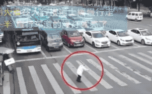 一位老人拄着拐杖过马路