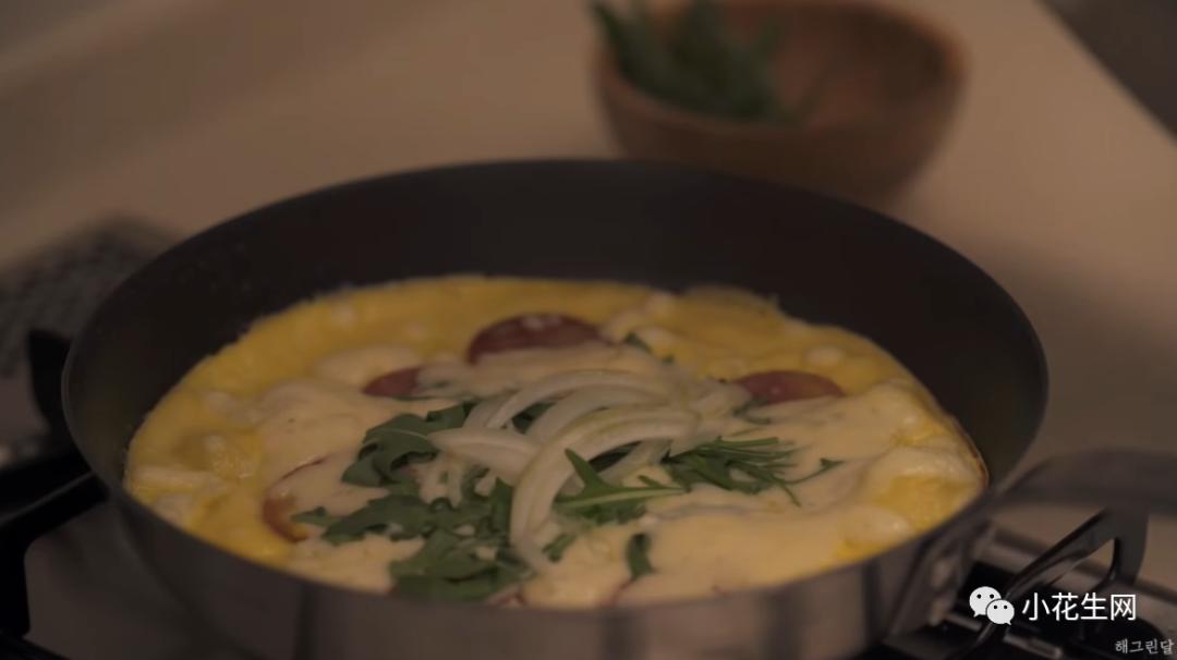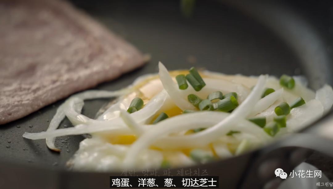 第七招:墨西哥鸡蛋饼先煎鸡蛋,放上洋葱、小葱和芝士