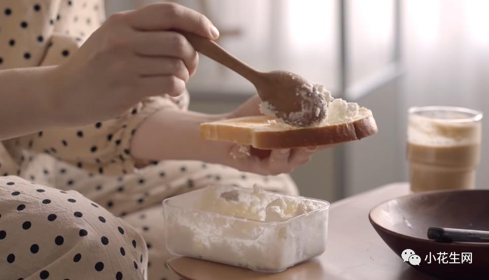 冰箱里的鲜奶油拿出来抹在热乎乎的面包上