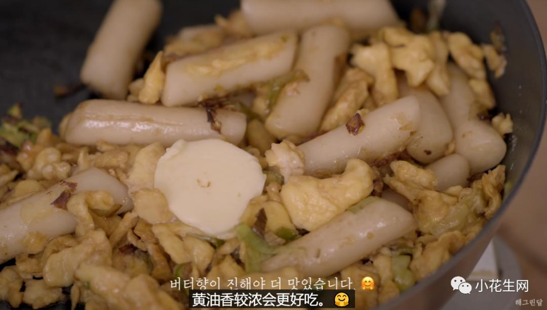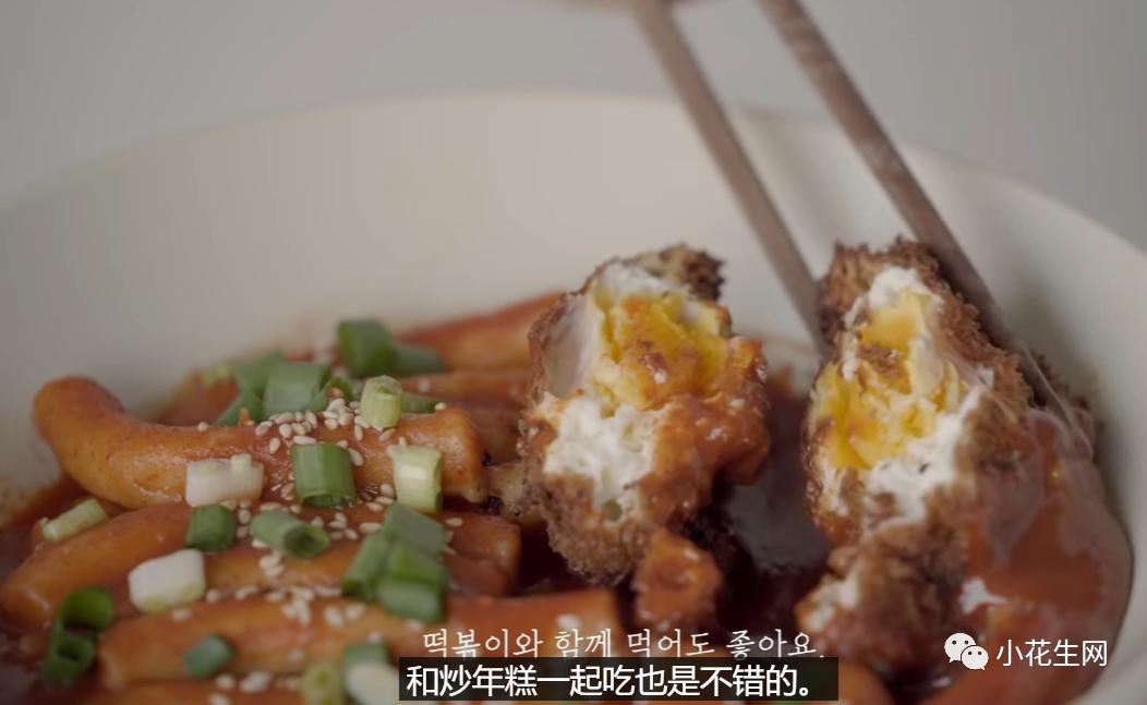 韩国人爱吃的炒年糕,加个蛋…咬开,半熟的蛋黄很诱人啊~