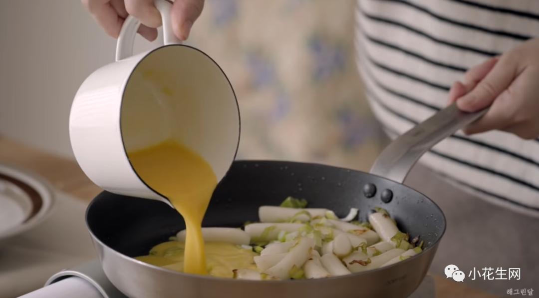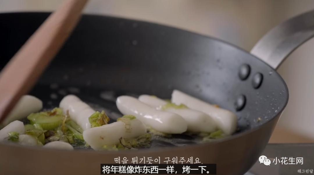 第三招:年糕鸡蛋烙先用葱油炒一下年糕